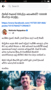එහෙත් මේ කාලකණ්නි රාජපක්ෂ වරුන්ගේ තක්කඩි කට්ට කයිරාටික ජීවිතය හා පැවැත්ම සමාජයට හෙළිදරව් වීම යුද ජයග්රහණය නිසා වසන් විය.මිල්ටෙරි නන්දසේන ජනපතිවරයා ලෙස පත්වීමෙන් අවුරුදු තුනක් ගෙවී යන්ටත් පෙර තක්කඩි රාජපක්ෂවරුන්ගේ උපාසක පිරුවටය ගැලවෙමින් තිබේ.එය රාජපක්ෂ සනුහරයට පල දෙන දේව ශාපයක් වෙන තරමට සියල්ල සිද්ධ වෙමින් පවතී.රට මේ යන විදියට සිය බලය ආරක්ෂා කර ගැනීමට කාලකණ්නි රාජපක්ෂ වරු මොන ගේම් ගැහැව්වද ඔවුන්ගේ තක්කඩි භාවිතය පිළිබඳව ජනතාව දැන් දැන් තේරුම් ගනිමින් සිටී.එහි හොඳම උදාහරණය මුහුණු පොතේ මහින්ද රාජපක්ෂගේ ගිනුම බලන අයෙකුට වටහා ගන්නට හැකිය.කාලකණ්නි මහින්ද රාජපක්ෂ ගේ දෙවන පුත්රයාගේ උපන්දිනය අදය.ඒ බව සිහිපත් කරමින් සිය පුත්රයාට සුබපතමින් මහින්ද රාජපක්ෂ සටහනක් තබා තිබේ.මෙම සටහනට පහලින් දමා ඇති කමන්ටු කියවන විට තක්කඩි රාජපක්ෂවරුන්ගේ අනාගත කේන්දරය කවර ආකාරයේද යන්න සිතා ගන්නට පුළුවන.සැබෑවටම රටට පිළිලයක් වූ මේ තක්කඩි කාලකණ්නි පවුලේ අවසානය නිශ්චිතව තහවුරු කරන්නට නම් දෙබිඩ්ඩෙක් නොවන දේශපාලන නායකයෙක් රටට