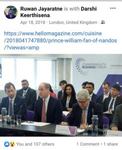 2018 වසරේදි එංගලන්තයේ පැවති පොදු රාජ්ය මණ්ඩලීය හමුවේ නියෝජිතයකු ලෙසට මෙම රාජපක්ෂලාගේ එක් අධ්යක්ෂක වරයෙකු පැමිණෙන්නේ කාගේ අනුහසින්ද ඔහු ශ්රි ලංකාව නියෝජනය කිරීමට ඇති රාජ්යතත්රික භාවය කළුසල්ලි සුදු කරන ව්යාපාරවල මහින්දලා ගේ අධ්යක්ෂකයෙකු වීමද……. ? ඊට සාක්ෂි ඇති අතරම ඒ පිලිබදව බ්රිතාන්ය රජය දැනුවත් කිරීමට ද අපි කටයුතු කරන්නෙමු.