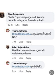 මේ මාධ්යවේදී තරිඳු ජයවර්ධනට මුහුනු පොත ඔස්සේ මේ තිරිසනා කළ අපහාසයයි.මේ තිරිසනාට සිතා ගෙන සිටින්නේ “මේකා පස්ස දෙන විදියට” අනෙක් මිනිසුන්ද හැසිරෙනවා ඇත කියාය.එපමනක්ද නොවේ පසුගිය දිනවල කොළඹ පැවැති මහජන විරෝධතා වලදී මේ කෂඩයා ඉතා සාහසික ලෙස විරෝධතා කරුවන්ට හිරිහැර කළ බවද සඳහන් කරමු.