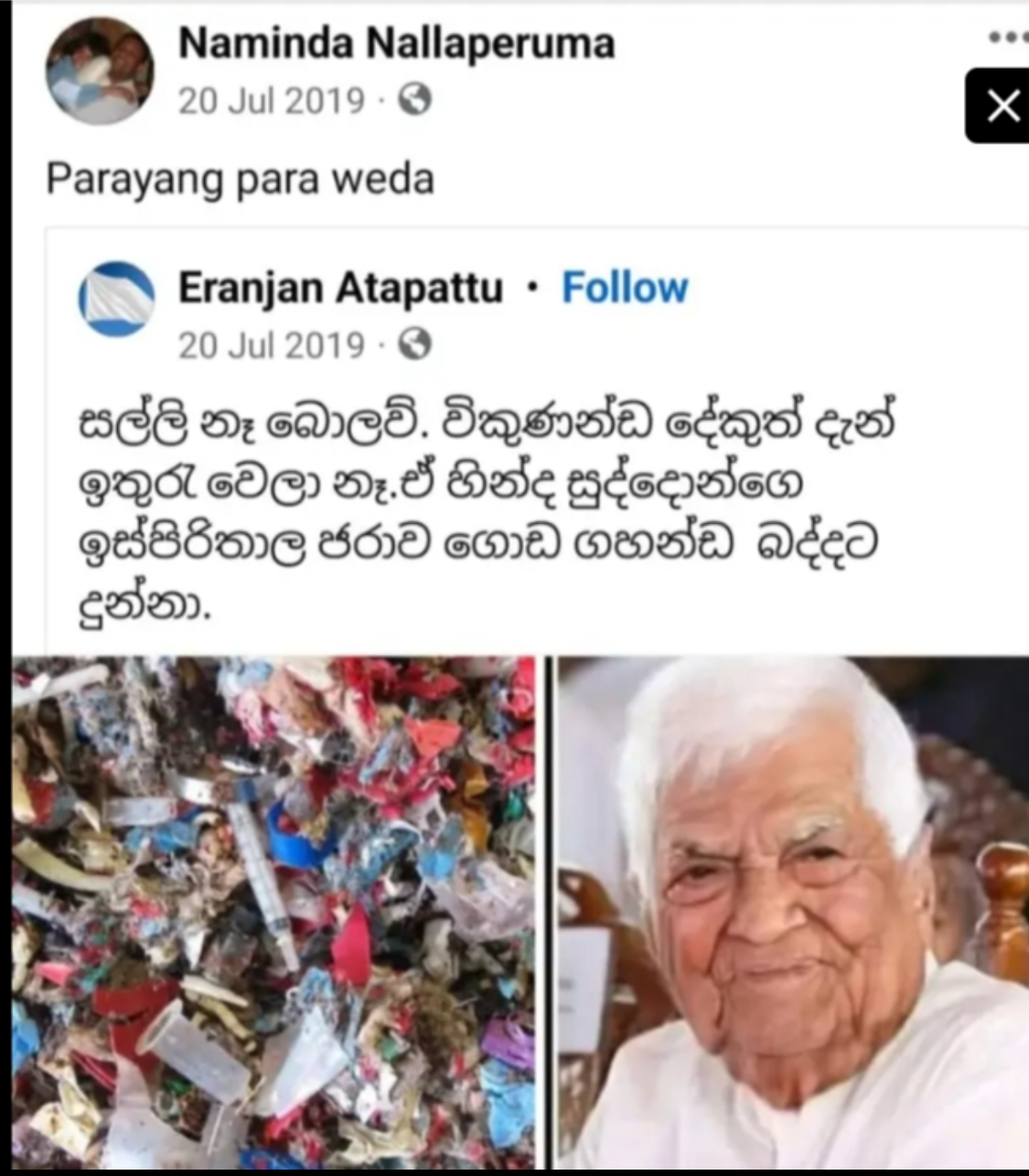 මේ කර්නල් නමින්ද නල්ලපෙරුම රනිල් වික්රමසිංහ ගේ විරූපී ඡායාරූපයක් මුහුණු පොතෙහි පල කර තිබූ පෝස්ටුවකි.