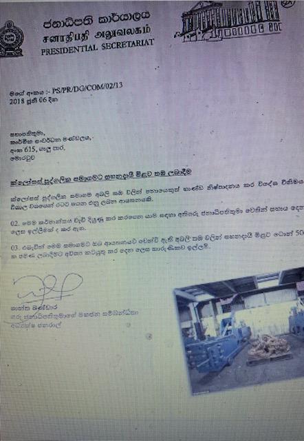 මේ වන විට සභාගත කර ඇති ලිපියෙන් මුළු මනින්ම රටේ ජනාධිපතිවරයා මේ බෝම්බ කම්හලට ත්රිවිද හමුදාවල හා පොලිසියේ හිස් පතරොම් කොපු දීමට නියෝග කොට ඇත.