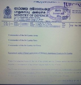 හමුදාපතිවරුන් වෙත ආරක්ෂක අමාත්යංශයෙන් යවන ලද ලිපිය