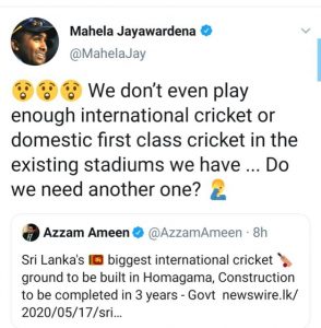 රටේ අත්යාවශ්ය අවශ්යතා මඟහැර ඔවුන්ගේ සාක්කු පිරෙන මේ ව්යාපෘතිය පිලිබද හිටපු ප්රවීණ ක්රීඩක මෙහේල ජයවර්ධන මහතා තම අදහස මෙසේ ඉදිරිපත් කොට ඇත.