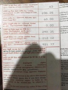 ඒ මිනිස්සු බලන්නේ විදුලි පාවිච්චි කරපු බිලේ වැඩිවීමක් විතර නිසා මෙය එක්තරා ආකාරයක් ඇස්බැන්දුමක්ය. මෙහි අනික් කොටස ව්යාපාරකරන අයට එය තුන් ගුණයක්ව ඇති බව විදුලි බිලෙන් ඉතාම පැහැදිලිය ඒත් ඒ බිල් අස්සේ තවත් සිදුවෙන අපුරු තම හැංගිල්ල පසු ගිය මාසවල රුපි;12000 ක අසන්නව ගිය විදුලි බිල රුපි; 29679.52 දක්වාම අරුම පුදුම වැඩි වීමක් කර ඇත.