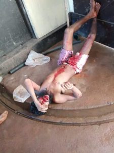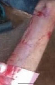 විශාල ලේ තැවරී ඇති අතරම කටේ ලේ තැවරී ඇත.වෙඩි වැදුන පුද්ගලයකු මෙසේ අත හිසට උස්සන්නේ නැත. මෙම පුද්ගලයාගේ කකුල් දෙක කළු පැහැති තවත් ලෑල්ලක් උඩ තබාගෙන සිටියත් මෙම පුද්ගලයාගේ වම් සහ දකුණු කකුල් දෙක ගලා ගිය ලේ පහරවල් සියල්ලම සෝදා ඇති බව ඉතා හොඳින් නිරීක්ෂණය වේ.