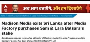 මැඩිෂන් මිඩියා අයත්ව තිබුනේ සෑම් හා ලාරා බල්සාරා නැමති ඉන්දියානු ප්රධාන පෙලේ ව්යාපාරිකයන් දෙදෙනෙකුටය . යෝෂිත රාජපක්ෂට මීට පෙරCSN නාලිකාව අයත්ව තිබු අතරම 2015 දී ඒ පිලිබදව රු; කෝටි ගනනක් මුදල් ඉපයිම පිලිබදව අධිකරණයේ නඩුවක්ද තිබුණි. ඒත් දැන් ඒ සියල්ලම නිදොස් කොට නිදහස්ව ඇත.